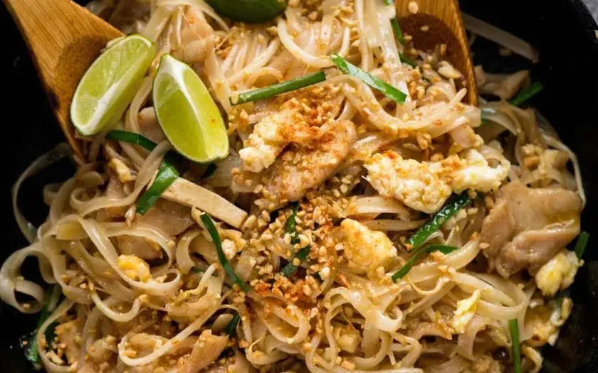 Pad Thai (Thailand): Pad Thai is a classic Thai dish consisting of stir-fried rice noodles with tofu, shrimp, bean sprouts, and egg. It is typically flavored with tamarind paste, fish sauce, and lime juice, and garnished with crushed peanuts and fresh herbs.