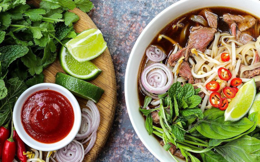 Pho (Vietnam): Pho is a popular Vietnamese noodle soup made with beef or chicken, fresh herbs, and rice noodles. It is served with a side plate of bean sprouts, lime wedges, chili peppers, and herbs like basil and cilantro, allowing diners to customize their soup.